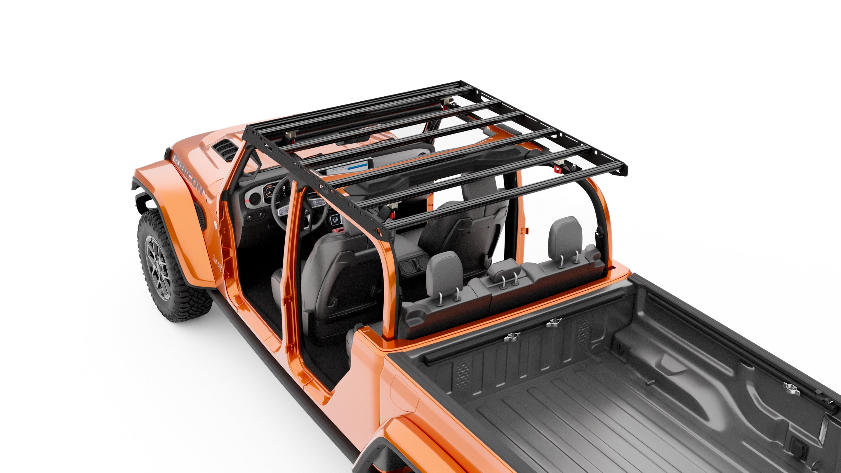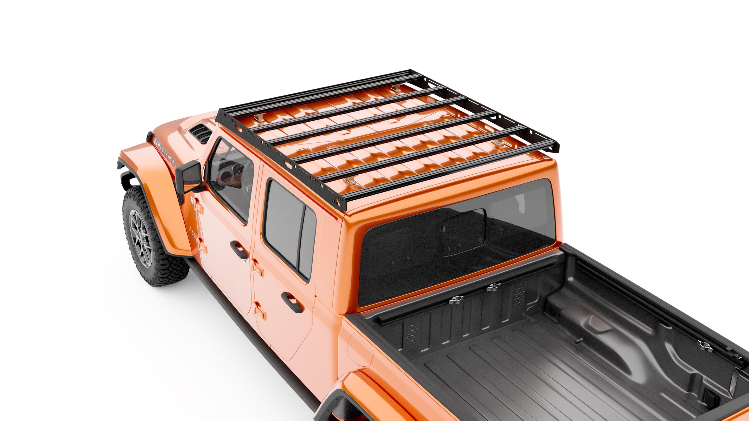 This full-length aluminum roof rack for the Jeep JT mounts directly through the factory hard top into the roll cage, delivering rock-solid strength and long-term reliability.